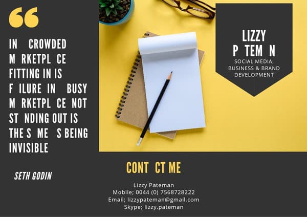 Lizzy Pateman is a social media, brand, and business development manager with a proven track record of success and over 15 years of experience within many sectors, including fashion (retail and trade), finance, construction, technology, hair and beauty, licensing, art, events, exhibitions, and publications. She has worked on various social platforms such as Facebook, Instagram, Twitter, Pinterest, YouTube, LinkedIn, and Tumblr. Her past clients include DC Comics, Rogue and Wolf, CID Entertainment, Fork Truck Control (FTC Group), Spiral Direct, LondonEdge, Attitude Clothing, and T.ba Life.