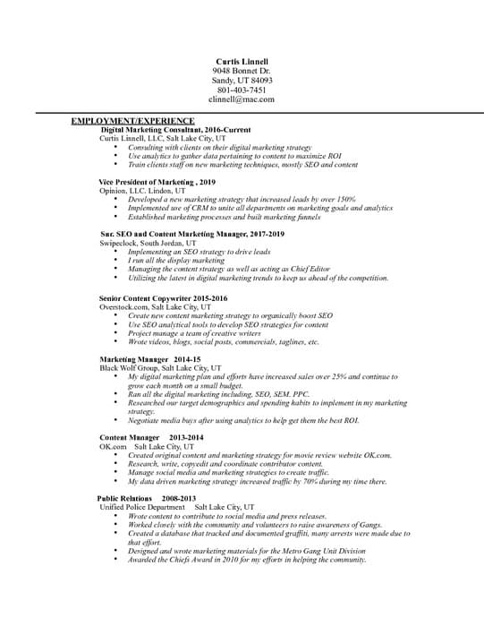 Curtis Linnell has experience across various aspects of digital marketing, including SEO, SEM, PPC, analytics, copywriting, and content marketing. He has worked for companies such as Opinion LLC, SwipeClock, Black Wolf Group, and OK.com. At Overstock.com, he created a new content marketing strategy to organically boost SEO and wrote videos, blogs, social posts, commercials, and taglines. His experience also includes public relations for the Unified Police Department at Salt Lake City, UT.