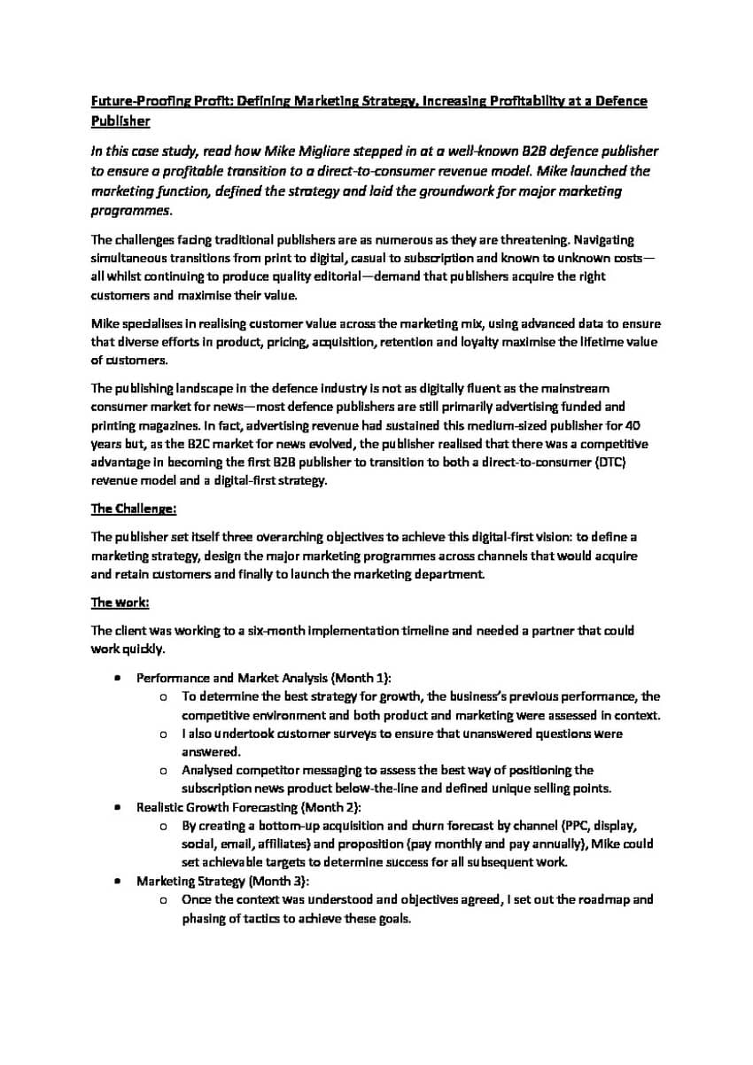 Mike is a strategic marketing leader that has experience in senior positions and as a consultant in B2C and B2B brands in media (News UK), banking (HSBC), and SaaS solution providers (TMAC). He pioneered the use of AI-driven hyper-personalisation in customer engagement and has a long history of driving award-winning growth in revenue and volume whilst maintaining cost leadership.