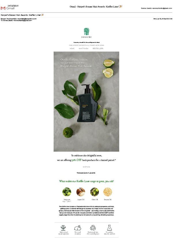 Banyan Tree Essentials Newsletter - Kieffer Lime awards