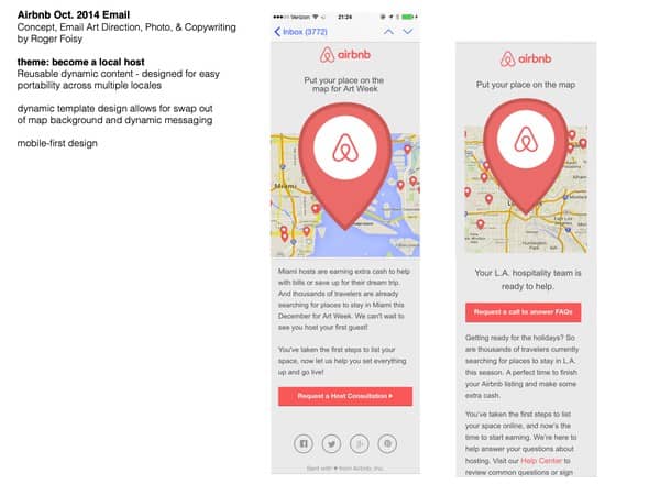 Roger Foisy is a creative marketing leader with over 15 years' experience in all aspects of digital marketing, including email, PPC, UX, brand strategy, CRM and lifecycle automation, partnerships and offline marketing, creative direction, social media content creation, content marketing, and copywriting. Specializing in email marketing, he has worked in senior marketing roles for large companies such as TripAdvisor, Carnival Cruise Lines, Harry & David, and Airbnb.